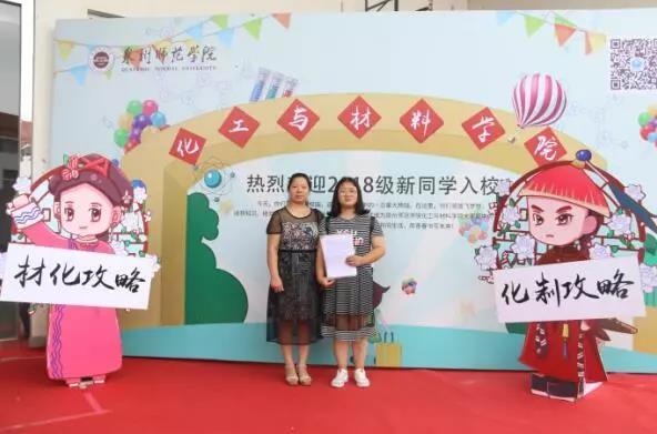 化工与材料学院安排了看实验仪器说出仪器名称和看化学模型选出对应化学式的互动知识小游戏,迈出对新生“增负”学习教育的第一步。而代表着化工与制药类和材料与化学类两个大专业的两个超级可爱的卡通人物——化制攻略和材化攻略则时刻告诉“萌新们”大学可不是偷懒的地方而是人生真正的开始。