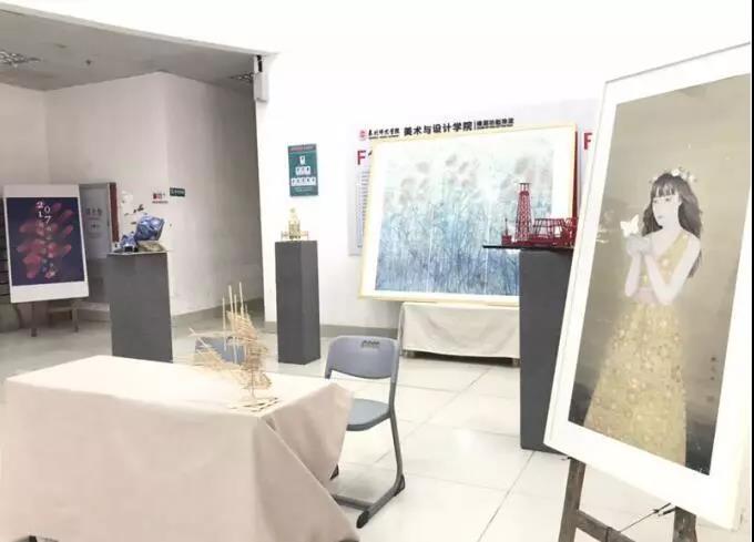 美术与设计学院结合本专业特色,让新生合力完成开学第一画——钉子画《麦田群鸦》,既体验到团结合作的乐趣,也融入“美院一家人”的理念。一楼大厅布置了学长学姐的部分优秀作品为新生树立了学习的榜样。
