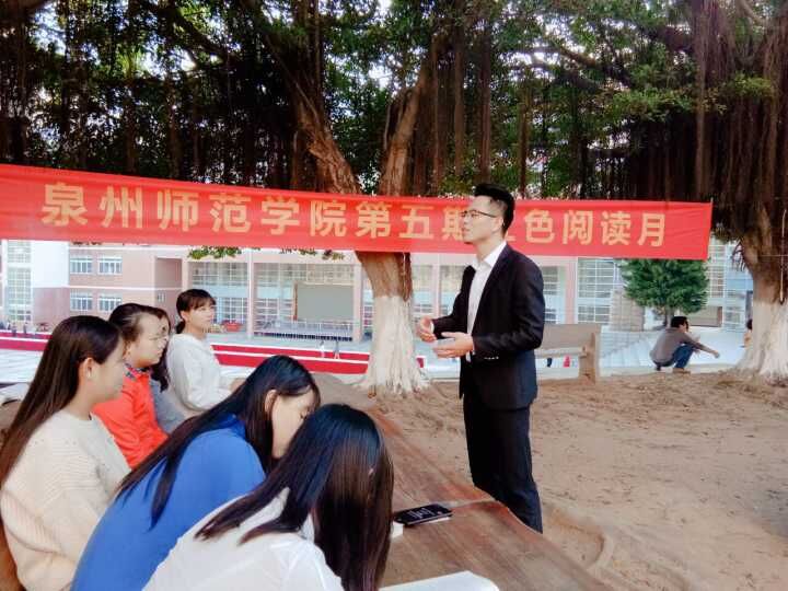 中山广场中心,教育与科学学院展示百米长卷,每一幅画讲述着不一样的故事;中山广场上的木桌部分区域,习近平新时代中国特色社会主义思想读书社开展泉师的第五期红色阅读月和习近平新思想的读书活动,邀请喜欢读书的同学与他们一起阅读和学习;在读书协会一旁摆放着手工协会制作的各种手工艺展品,每个手工艺都有着不一样的亮点映入眼帘。在中山广场的右侧,轮滑协会的小伙伴围着障碍物绕行,似乎与它们进行别样的交流。文科楼B一角,棋牌协会举行棋牌友谊赛,在这里可以看到各种爱好棋牌的人聚集于此。走到操场的足球场上,跆拳道协会和武术协会的成员们在这练习着他们的基本功和日常训练,即使有着汗水也乐在其中!校道上的鸟巢图书馆似乎也与往常有所不同,读者协会放置了琳琅满目的书籍,也在用自己的方式庆祝学校60周年华诞。校社联宣传部和摄影协会以及学生通讯社组织了一支摄影队伍和新闻队伍,对当天活动进行跟踪。