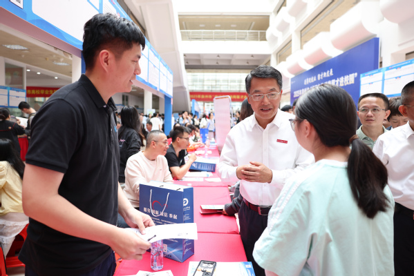 校党委书记柯瑞清到招聘会现场,与参会单位和前来应聘的毕业生交流,详细询问企业招聘代表招聘岗位的职责要求、发展前景及薪资待遇,倾听毕业生的职业规划与求职困惑,鼓励毕业生找准定位、发挥优势、勇敢追梦。