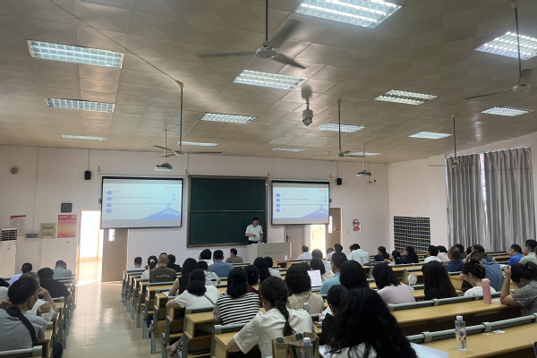 7月3日下午,校党委常委、副校长夏侯建兵在理工楼为数学与计算机科学学院全体教师上深入贯彻中央八项规定精神学习教育专题党课。数计学院党政负责人、全体教师参加。