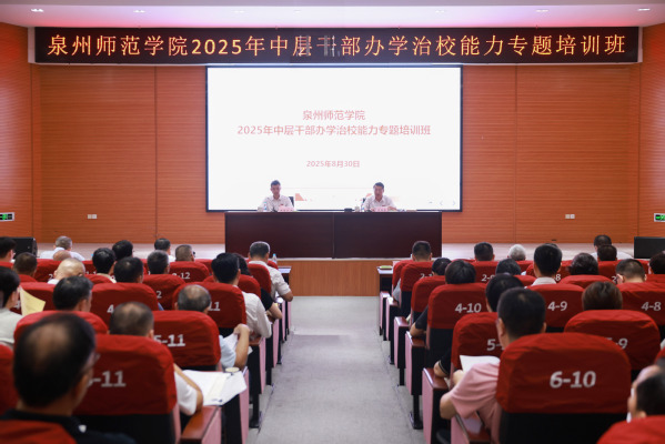 8月30日至9月1日,学校举办2025年中层干部办学治校能力专题培训班。培训班深入学习贯彻习近平总书记关于教育的重要论述和在福建考察时的重要讲话精神,深入学习贯彻全国、全省教育大会精神、省委十一届八次全会精神和2025年全省高校领导干部办学治校能力提升研讨班精神,巩固拓展深入贯彻中央八项规定精神学习教育成果,持续深化拓展“深学争优、敢为争先、实干争效”行动,重点聚焦学校“十五五”发展目标、发展思路、发展举措,全面提升内涵建设水平,全力推进学校事业内涵式高质量发展。培训班采取主题党课、专家辅导、领导主讲、专题汇报、分组讨论、个人自学相结合的方式进行。全体校领导、全校中层干部参加。