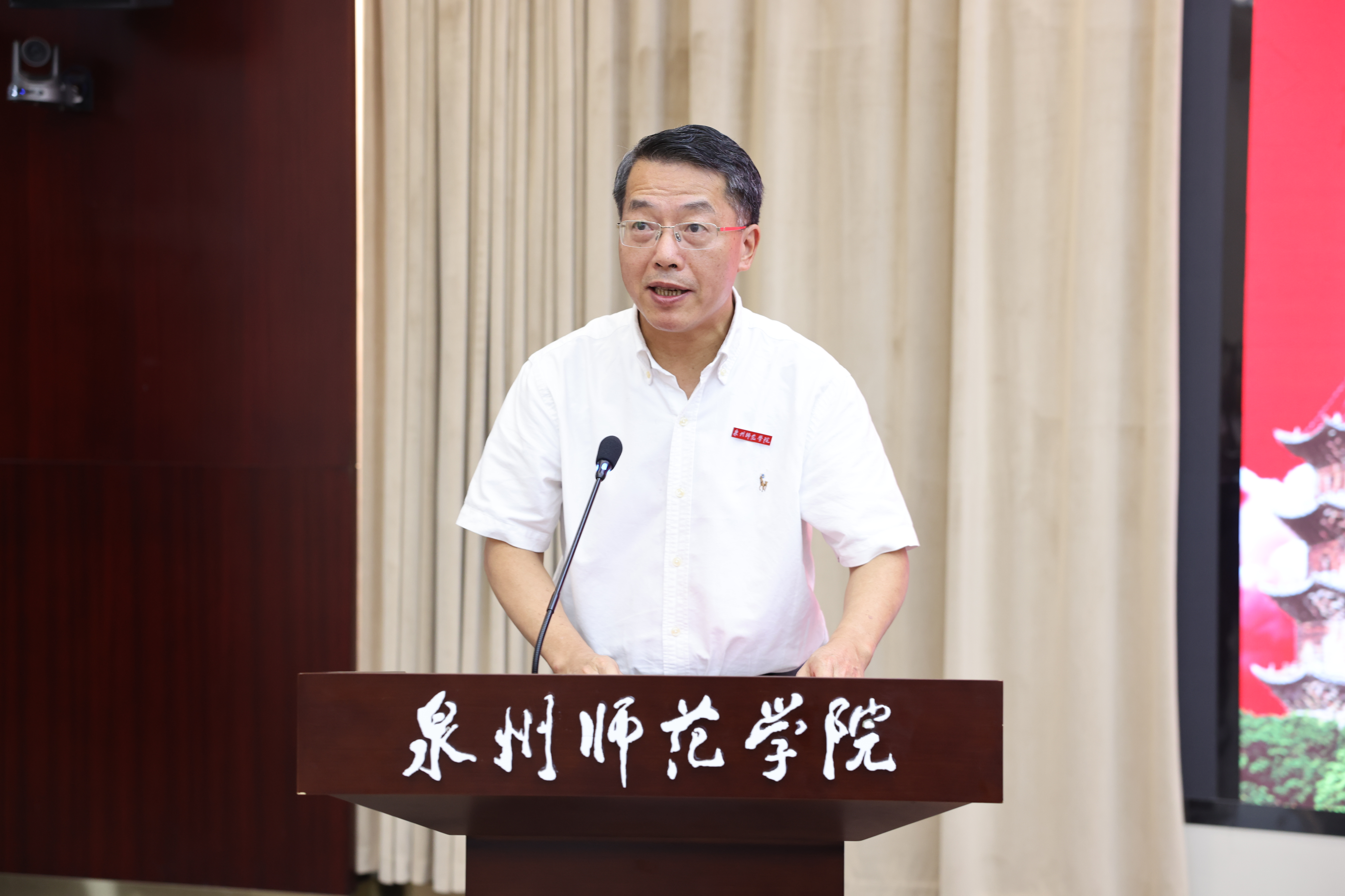 柯瑞清代表学校致辞。他指出,闽南文化作为中华优秀传统文化的重要支脉,在增进台湾同胞的民族认同、文化认同、国家认同,广泛凝聚侨心,服务国家“一带一路”倡议等方面发挥着重要作用。泉州作为世界闽南文化的发祥地、遗产富集区和生态保护核心区,在千年历史积淀中形成了“爱拼会赢、重情重义、灵智顺势”的鲜明特质,其文化影响力远播海内外。长期以来,学校植根泉州深厚的历史文化,深入开展闽南文化研究,拥有扎实的研究基础,现有中国社会科学院文化研究中心闽南文化研究基地和台盟中央闽南文化交流研究基地、国家语委丝路语言文化研究中心、福建省社科基地南音研究中心等数10个省部级以上科研平台,形成了6个较为稳定的研究团队,在权威媒体与核心期刊上发表相关研究论文1100多篇,出版相关著作(含)教材70多部,获批国家社科基金项目、教育部人文社科项目等省部级以上科研项目130多项。成立世界闽南文化交流研究院,是深入学习贯彻习近平文化思想,服务福建文化强省、社科强省建设的具体行动,也是助力两岸融合发展示范区建设,以共同文化渊源夯实两岸融合根基、筑牢两岸同胞心灵契合纽带的积极作为,对学校推进一流应用型大学建设具有重要意义。