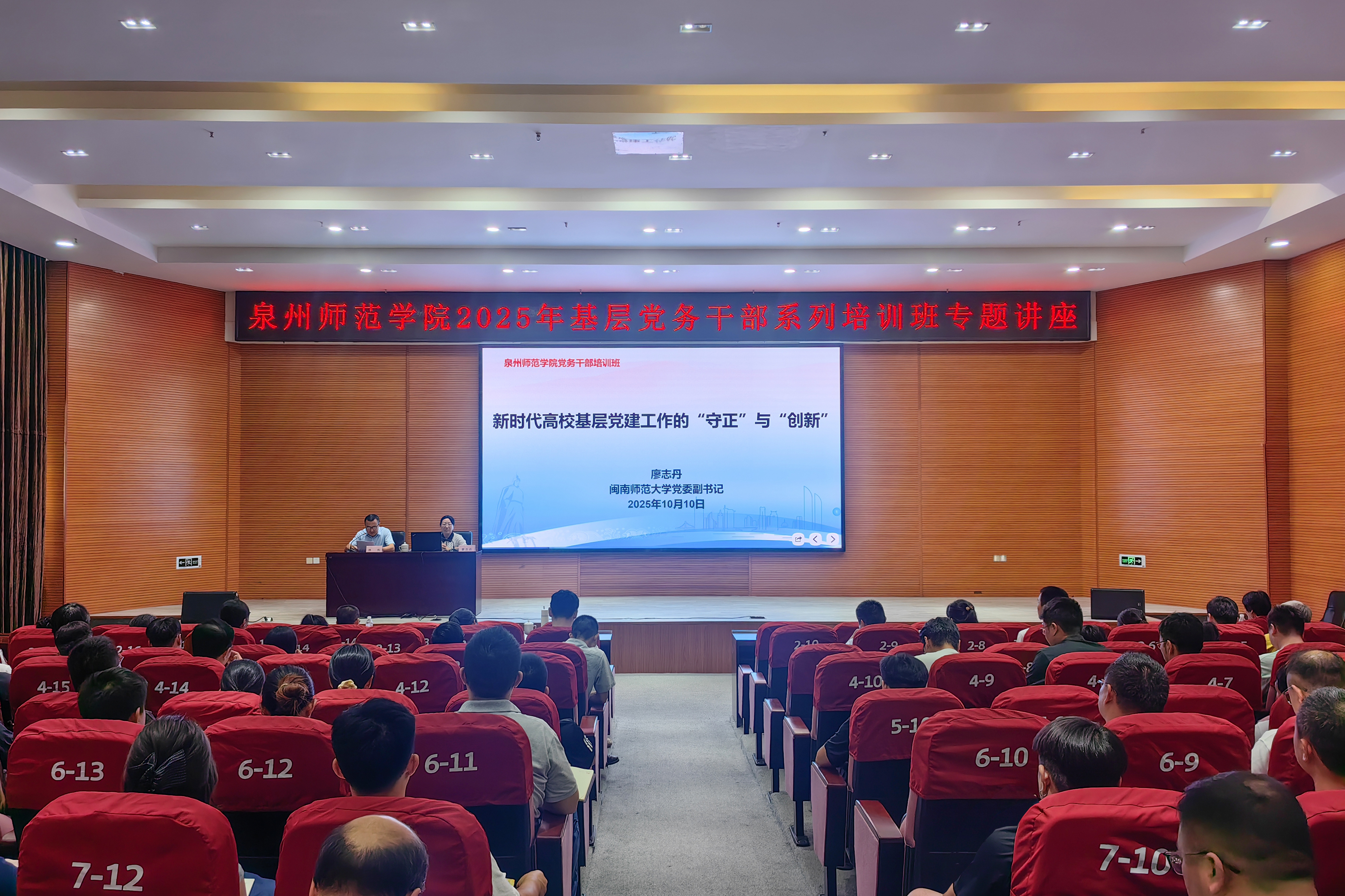 10月10日下午,我校2025年基层党务干部系列培训班开班式暨第一讲在特教大楼第二学术报告厅举行。本次培训旨在提升党务干部履职能力,推动学校党建工作高质量发展。本讲邀请闽南师范大学党委副书记廖志丹主讲。全校党支部书记和组织员参加培训。
