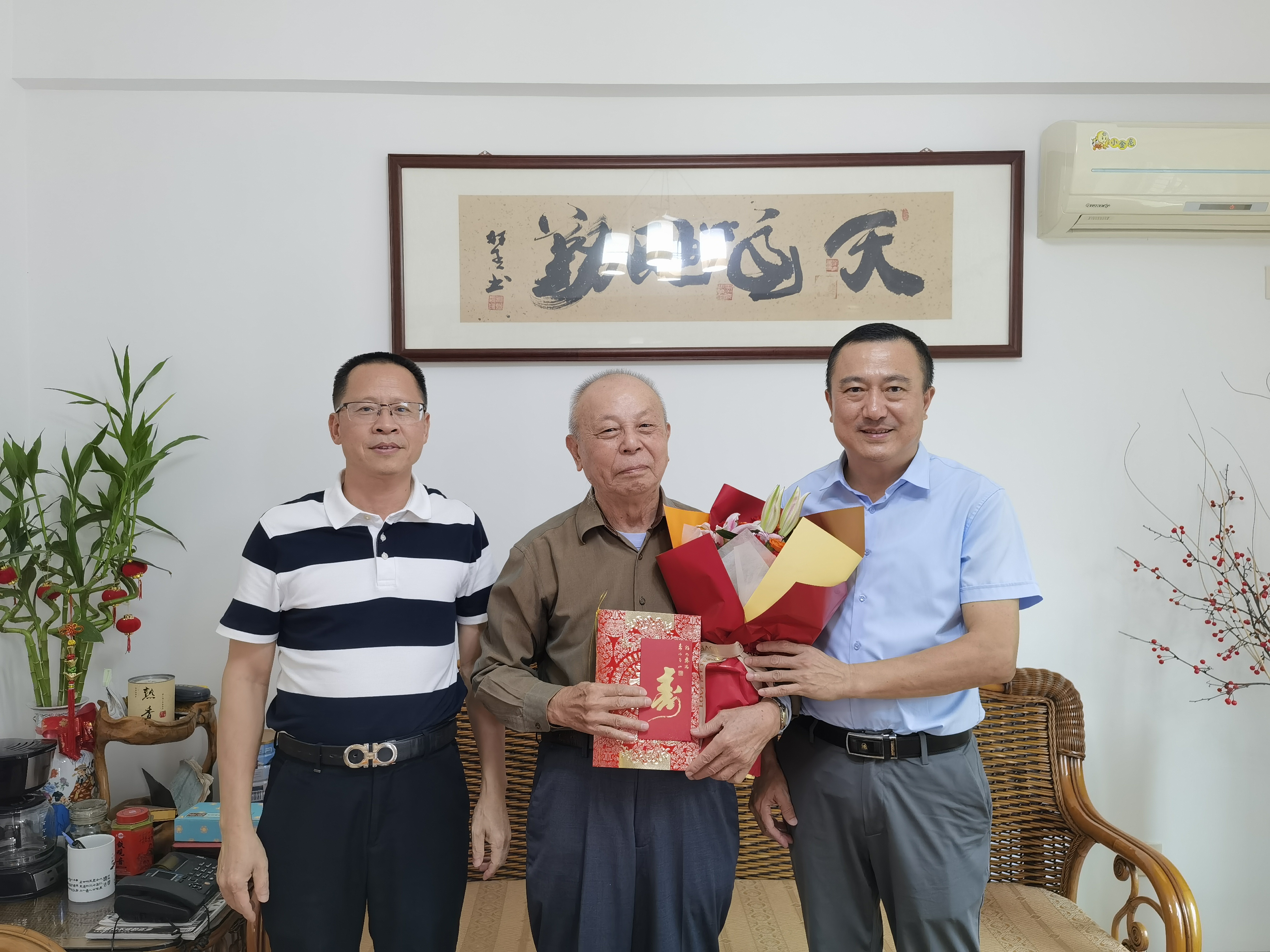 秋阳送暖,花香情浓。在重阳节来临之际,受校党委委托,党委副书记林伟带队走访慰问了我校70、80、90岁老同志,代表学校向他们致以节日的诚挚问候和崇高敬意,并送上鲜花、贺卡及祝寿金。