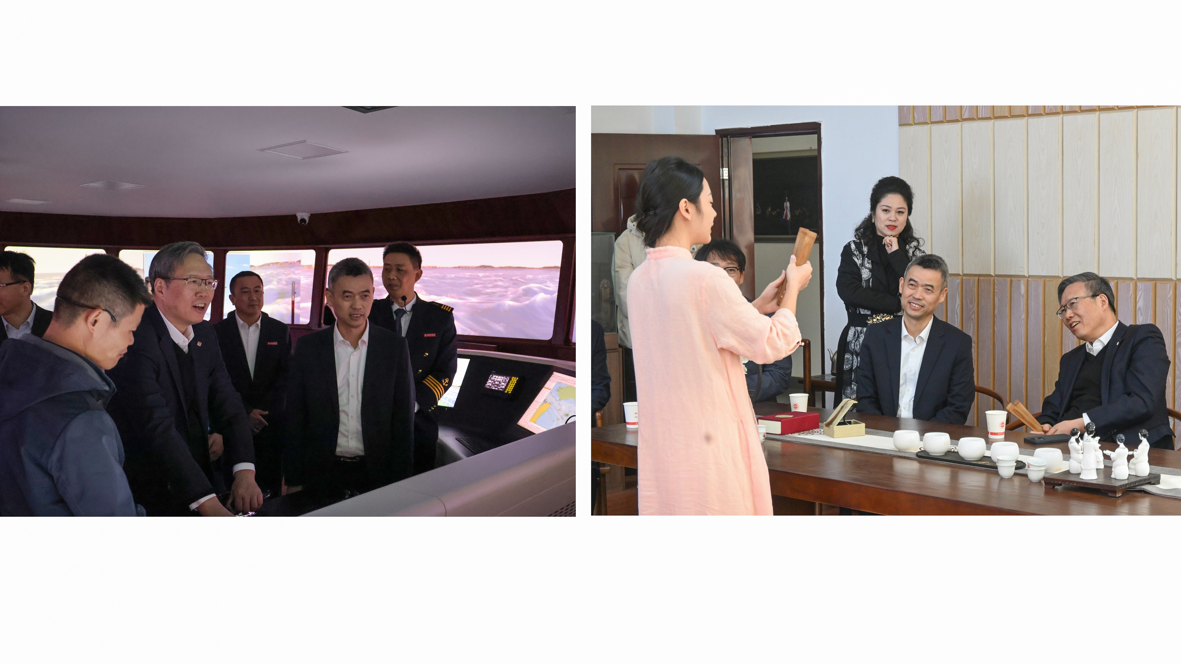 访问期间,滕锦光一行实地参访了光子技术研究院、泉州文化遗产研究院、泉州大气环境监测超级站,体验360°大型船舶模拟器,欣赏非遗南音表演,走访著名侨领陈守仁博士及其家族在学校捐建的建筑。