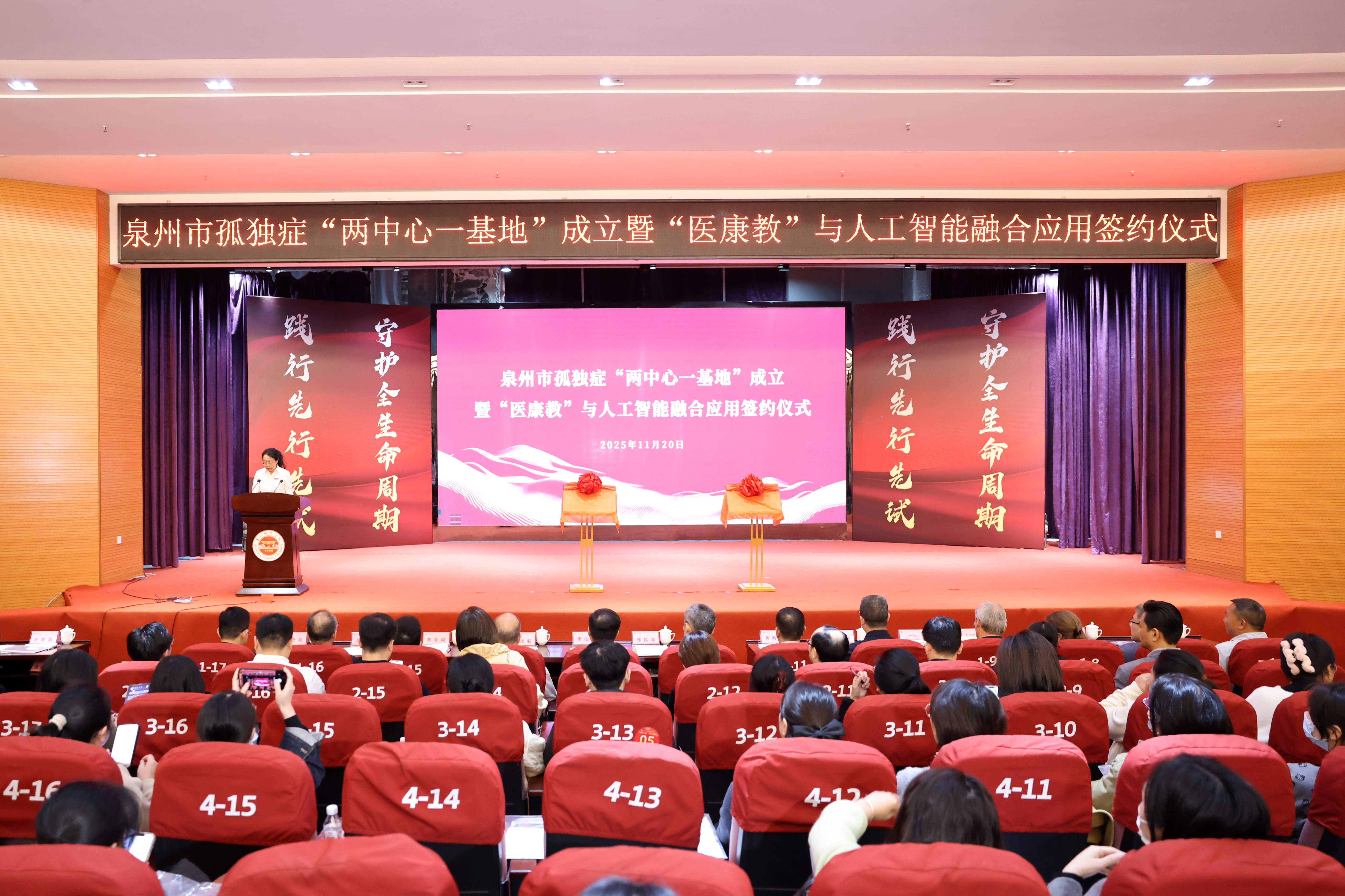 11月20日,泉州市孤独症“两中心一基地”成立暨“医康教”与人工智能融合应用签约仪式在我校举行。