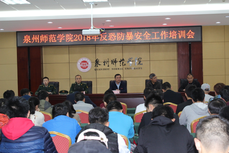 为进一步加强师生应对突发暴恐事件的防范意识,提高学校反恐防暴应急处突能力,构建安全和谐的校园环境,12月18日下午,学校保卫处、学生处联合后渚边防派出所在行政楼101室召开反恐防暴安全工作培训会,校党委副书记林伟,学生处负责人,后渚边防派出所副教导员胡杨,保卫处全体人员,商学院、航海学院和体育学院学生代表,校卫队代表,明德物业秩序部全体人员共100多人出席培训会,培训会由保卫处负责人主持。
