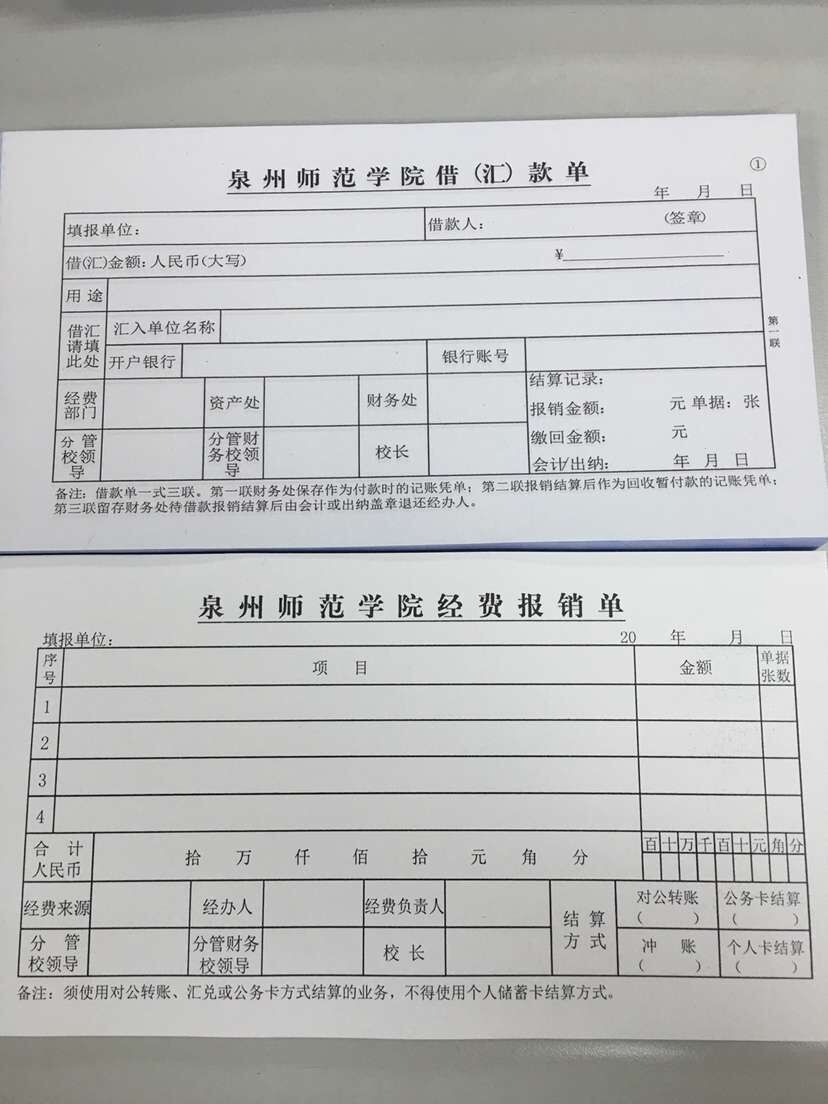 财务处已修订并重新印制《英国威廉希尔公司官网经费报销单》和《英国威廉希尔公司官网借(汇)款单》,旧版即日起停止使用,请各单位至行政楼205室领取新版单据,新版单据样式详见附件。