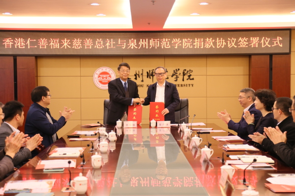 Dr. Tan Siu Lin and Renshan Fortune Charity Association donated RMB 1 million and HKD 2 million to QNU and the Hong Kong University of Education respectively, to support cooperation between the two universities mainly for scholar visits, student exchanges, faculty advance study and research team building. Dr. Tan Siu Lin and his family are enthusiastic about charity and the education in their hometown. Over the years, they have made donations to many building projects of QNU, including Sun Yatsen Memorial Hall, Sun Yatsen Cultural Square, teaching buildings, gymnasium and etc.. They have also co-founded TSL Business School and established Tan SiuLin International Exchange Endowment, supporting Micronesian and QNU students to study abroad.