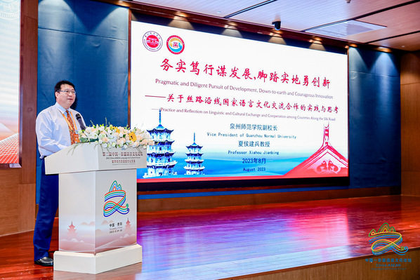 On August 29, the second China-ASEAN Language and Cultural Forum was held in Guiyang. Prof. Xiahou Jianbing, QNU Vice President , participated in the forum and made the speech Pragmatic and Diligent Pursuit of Development, Down-to-earth and Courageous Innovation --- Practice and Reflection on Linguistic and Cultural Exchanges and Cooperation among Countries Along the Silk Road, which was highly praised by the leaders and guests attending the forum.