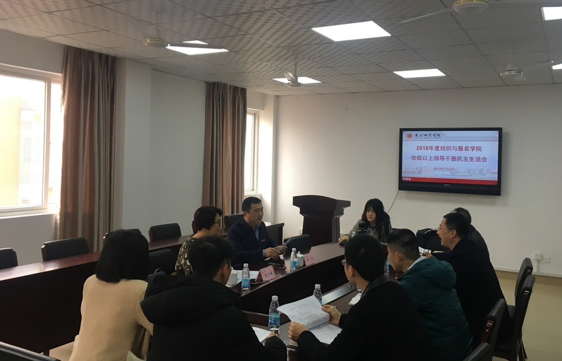 2019年1月22日上午,纺织与服装学院于王爱约实验楼701会议室召开2018年度处级以上党员领导干部民主生活会。校党委副书记林伟、学生处副处长黄志梅莅临参会,会议由学院党委书记张玉武主持,学院各党支部书记、各系主任、科室负责人、党建工作专题会成员参会。