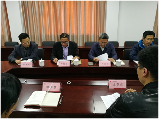 会上,组织部长方传安宣读了关于徐海燕、金敬业两位同志的任命文件。两名新任副院长徐海燕、金敬业先后发言,均表示感谢校党委和学院党政领导的培养和信任,在下步的工作中要忠诚于党、不忘初心,继续发挥专业优势,为学院的发展贡献自己的力量。邱夷平院长代表学院感谢校领导对学院建设发展的高度重视并对两名新任副院长提出了勉励要求。校党委副书记高云程代表校党委对学院班子提出五点建议:一要坚决贯彻执行党政联席会议制度,不断增强领导班子的合力。二要牢牢把握立德树人根本任务,时刻铭记教书育人的使命。三要加强人才队伍建设,力争实现科研新突破。四要坚持内涵发展、特色发展、增强社会服务能力。五要层层传导压力,扎实推进全面从严治党向基层延伸。