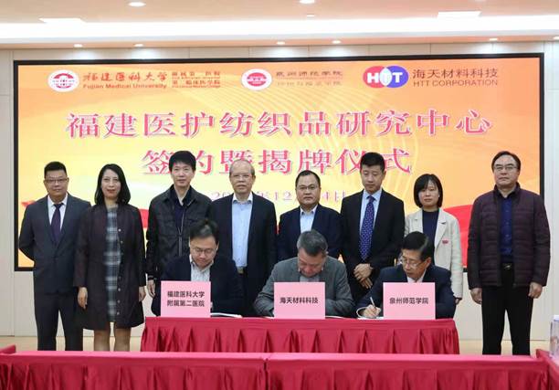 12月24日,福建省医护纺织品研究中心成立暨签约仪式在福建医科大学附属第二医院(以下简称“福医二院”)东海院区举行。英国威廉希尔公司官网纺织与服装学院、福建医科大学附属第二医院、泉州海天材料科技股份有限公司三方合作协力战“疫”。据悉,该中心将重点进行医护服、手术服、病患服以及其他医护纺织品的研发、推广和使用,将打造全国乃至全球领先的医护纺织品产学研用相融合的创新孵化平台。