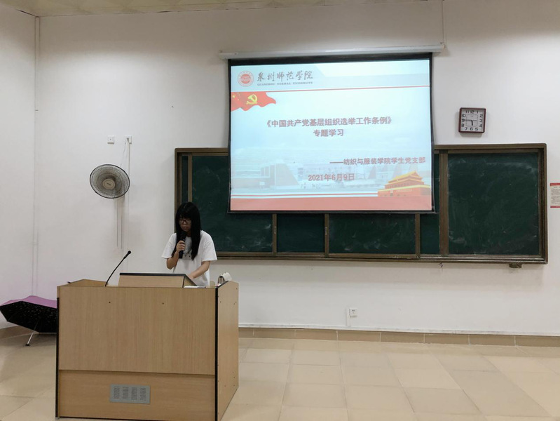 6月9日晚,纺织与服装学院学生党支部于荣助梯教212召开关于《中国共产党普通高等学校基层组织工作条例》和《中国共产党基层组织选举工作条例》的政治理论专题学习会。会议由学生党支部书记聂莹主持,支部全体党员参加此次会议。
