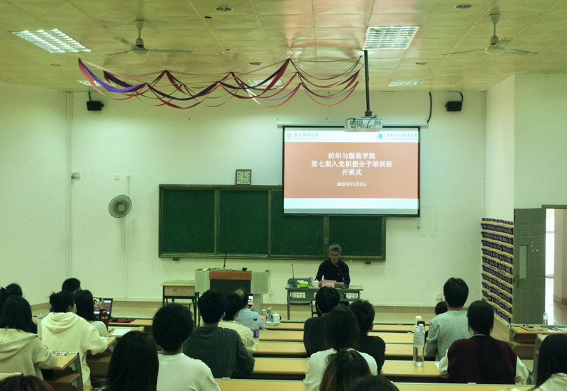 为深入学习宣传贯彻党的二十大精神,加强对入党积极分子的教育,进一步提高入党积极分子的思想理论素养,11月3日下午,纺织与服装学院在荣助梯教212举行第七期入党积极分子培训班开班式暨第一次专题讲座,学院党委书记黄国波、泉州市数字办党支部书记吴彧寰、培训班班主任陈灿辉和全体学员参加此次开班式。开班式由黄国波主持。