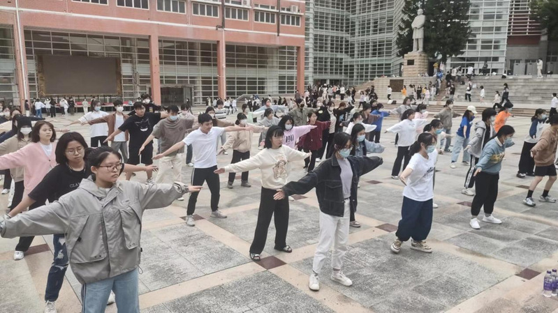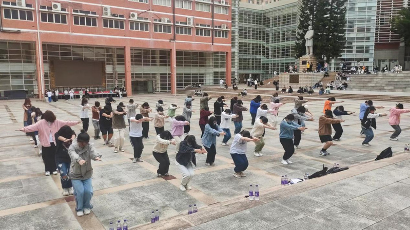 在午后的暖风中,由一百名2022级新生组成的广播操队员集中至中山广场,充分利用课余时光,在学生会文艺部的组织下有序进行广播操学习。“第十套广播体操现在开始”,随着音乐的响起,同学们整齐划一地跟着节拍,力求每个动作都做到最好,争取达到“快、静、齐”训练目标。学长学姐们将动作拆解,细致耐心进行教学。虽然训练艰苦,但心中对胜利的渴望和期待始终激励鼓舞着同学们。他们昂着头,挺着胸,展现了纺服学子健康向上、朝气蓬勃的精神风貌。