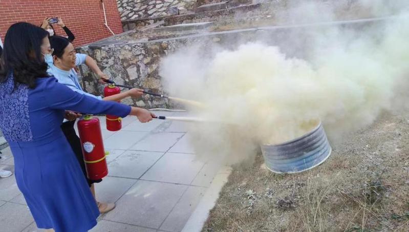 参加演练的同学们根据灭火器操作规范进行示范操作,有序体验火险扑灭处置操作。面对熊熊燃烧的火堆,每个人都沉着冷静,按照规范动作,将大火迅速扑灭。