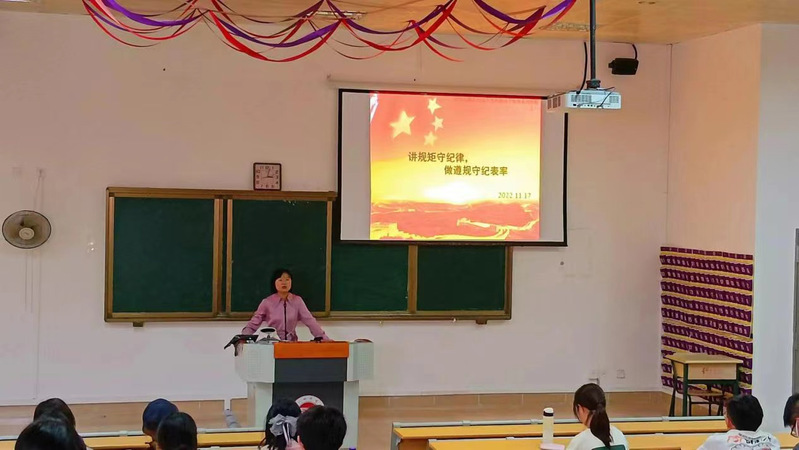 11月17日,党委纪检委员、副院长徐海燕以“讲规矩守纪律 做遵规守纪表率”为主题,解读党的二十大关于全面从严治党新战略新部署新要求,引导同学们要讲规矩、守纪律、尽责任、做奉献,帮助入党积极分子在学思践悟中端正入党动机、锤炼党性修养。
