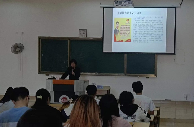 徐海燕以“学习贯彻习近平总书记关于青年工作的重要论述,增强新时代青年大学生的自信与担当”为主题,从自信的内涵、自信的来源、新时代青年大学生的担当等三个方面,为全体学员上了一堂生动的理论学习课,带领全体学员回顾了党的十八大以来,习近平总书记对青年朋友的关心、期盼和嘱托,引导同学们要增强“四个意识”、坚定“四个自信”、做到“两个维护”。徐海燕用图文并茂的方式详细介绍了对马克思主义的自信、对中国特色社会主义制度的自信以及对自我的自信等深刻认识,希望同学们立志做有理想、敢担当、能吃苦、肯奋斗的新时代好青年。