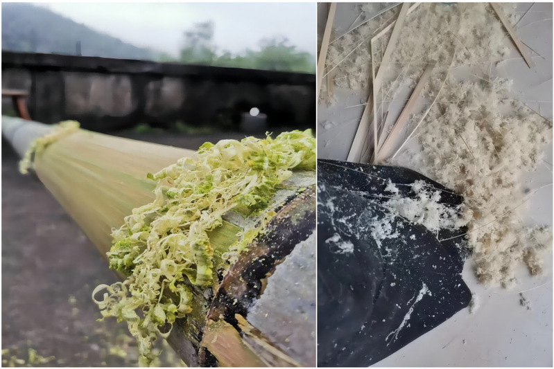 实践团队队员收集竹下角废料(左图:毛竹,右图:单竹)