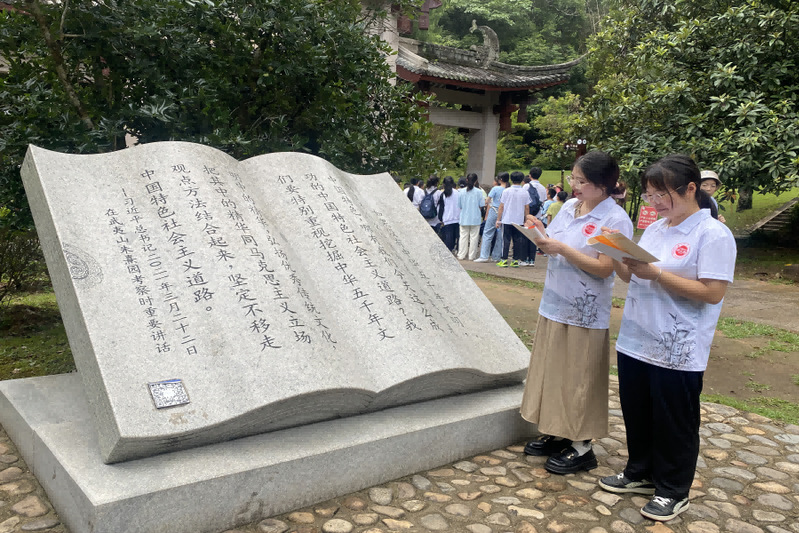 实践队队员在朱熹园重温习近平总书记视察讲话