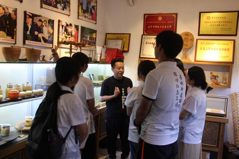 实践队员在武夷山市竹编工艺美术馆学习