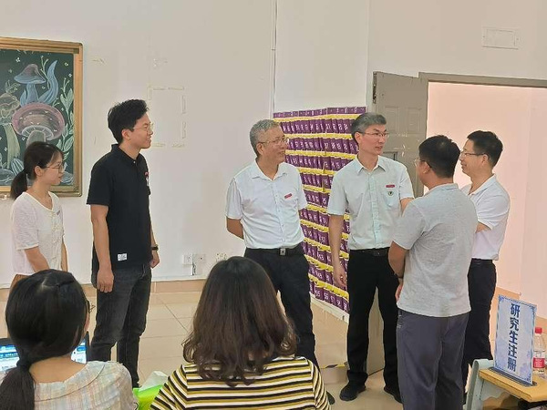 学校领导亲临现场指导学院迎新工作,慰问辛勤工作的老师和同学。