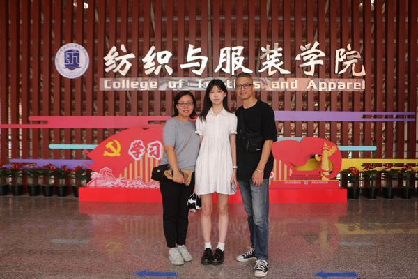 二是“我来‘纺服’打个卡”。照片是留住时光最好的方式,学院定制“我爱纺服”“心怀梦想,扬帆起航”“我是纺服人”等各式展板,妙趣横生,吸引新生及家长不断驻足拍照打卡。通过照片将青春的注脚在这一刻定格,希望同学们怀揣着赤诚之心,谱写大学生涯新篇章。