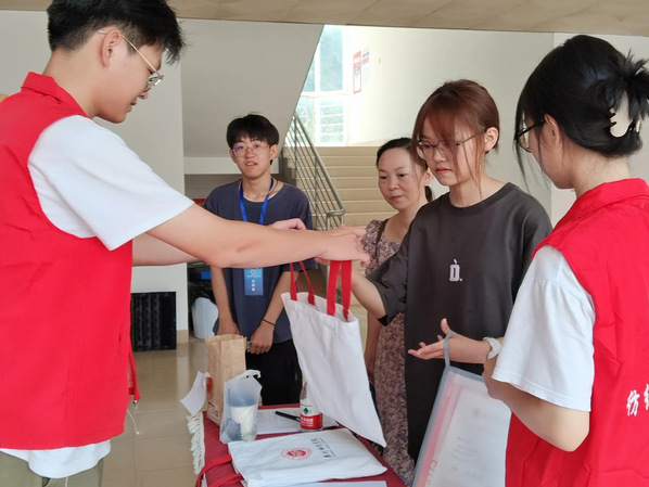 师生志愿者们热情洋溢地投入迎新工作中。从学校大门、咨询服务点、学生宿舍、学院报到处等,处处都能看到志愿者忙碌的身影,搬运行李、带路指引、安抚情绪、答疑解惑……他们认真负责、热情耐心,用温暖的微笑、周到的服务、耐心的话语,让2023级新同学感受到纺织与服装学院真诚的欢迎和深切的关怀。