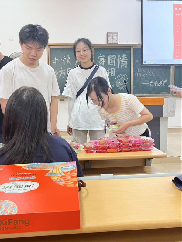 月满人齐全,家国共团圆。为了让留校学子感受到中秋团圆的温暖氛围,学院特别开展了中秋送月饼的暖心活动,通过精心准备不同口味的月饼,给留校学子们送上真切的关怀与节日祝福。月饼不仅仅是一种食物,更是一种文化的象征,一个团圆和祝福的载体,是中国传统文化的重要体现和传承。特别是2023级新生,每个人收到月饼时脸上都不由自主地绽放笑容。每逢佳节倍思亲,手中收到的是月饼,心里洋溢的是感动。和新同学、新朋友们一起吃月饼,消淡了新生思乡之情,让他们既感受到学校、老师的关爱,也进一步体会中国传统节日丰富的精神文化内涵。