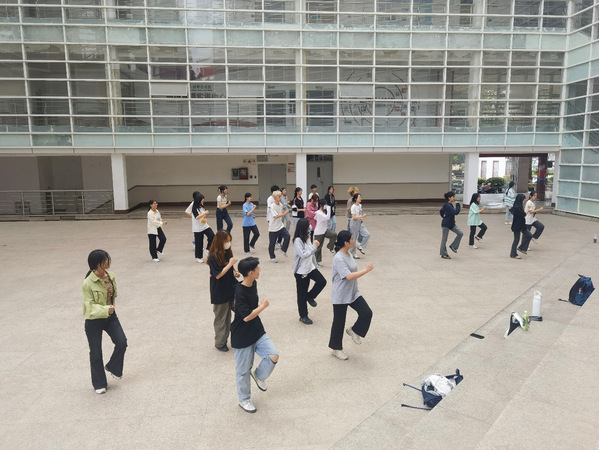 同学们每天中午在中山广场集合,在充分地热身过后,开始排舞训练。排练过程中,同学们热情浓厚、刻苦认真,小到肩膀如何摆动,大到舞蹈时如何变换队形,挥袖轻舞,踮脚弄步,精心打磨,没有丝毫懈怠,舞步由开始的凌乱变得整齐划一。同学之间还相互指正错误、互帮互助,提高动作准确度。在动感的音乐下,同学们挥洒汗水,有力的脚步声充满能量,以舒展自如的动作尽显青春的模样。同学们热情洋溢的笑脸、青春飞扬的身影成为了校园里一道亮丽的风景线。