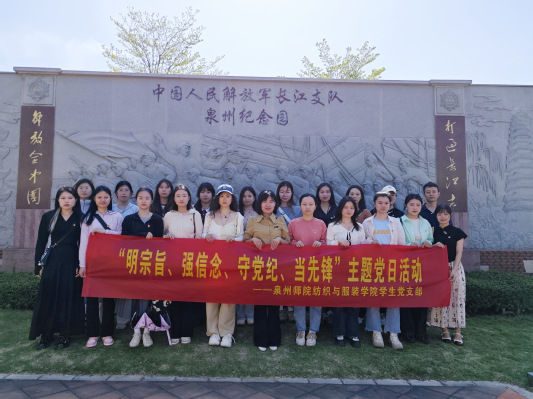 为扎实开展党纪学习教育,引导学生党员学纪、知纪、明纪、守纪,5月16日下午,纺织与服装学院学生党支部全体党员赴中国人民解放军长江支队泉州纪念园,共同开展“明宗旨、强信念、守党纪、当先锋”主题党日活动。