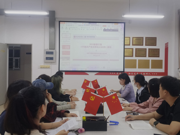 4月28日,本科生第三党支部书记聂莹以“2023新修订版《中国共产党纪律处分条例》解读”为题讲授党课。聂莹紧紧围绕“《条例》修订的时代背景?”“《条例》修订的突出特点?”“《条例》对于推动全面从严治党向纵深发展起到什么作用?”等内容展开了详细的解读。最后,她希望支部党员要增强党性意识,进一步严明政治纪律和政治规矩,使铁的纪律真正转化为党员干部的日常习惯和自觉遵循,做严守纪律的践行者。