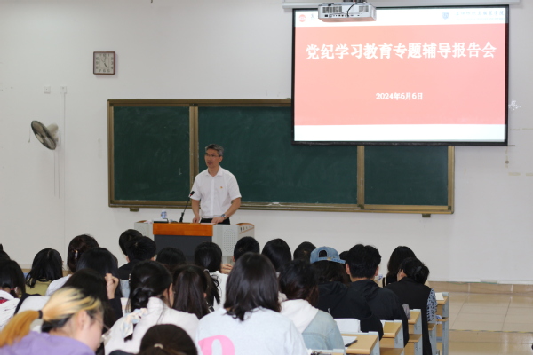 黄国波在总结时指出,辅导报告案例典型、数据翔实、发人深省,帮助与会同志准确理解和把握《条例》修订的历史及逻辑、突出特点和实践要求。他强调,一要加强理论学习。全院师生党员要深入学习贯彻习近平总书记关于全面加强党的纪律建设的重要论述,进一步增强遵规守纪的政治自觉、思想自觉、行动自觉,准确把握党纪学习教育的目标要求,做到学懂弄通、知行合一,做到学有所得、学有所悟、学有所用。二要强化纪律自觉。要时刻绷紧纪律这根弦,自觉遵守党的政治纪律、组织纪律、廉洁纪律、群众纪律、工作纪律和生活纪律,做到令行禁止、不越雷池。三要确保取得实效。严格按照校党委工作部署,根据学院具体工作方案和学习计划,聚焦目标,坚持问题导向,精心组织,扎实推动党纪学习教育落深落细落实。要加强成果运用,将学习动力转化为助推学校、学院高质量发展的实绩实效。