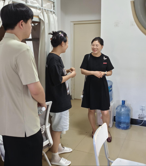 老师们还细致查看了宿舍设施情况,提醒同学们增强安全意识,保持整洁环境,营造和谐融洽的宿舍氛围。新生们纷纷表示,学院领导的亲切关怀让他们倍感温暖,对未来的学习生活充满期待,将努力规划好大学生涯,不负师长期望。