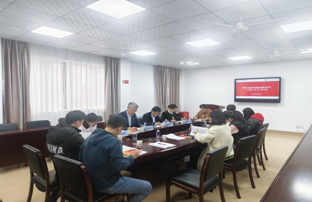 12月25日下午,纺织与服装学院召开党委理论学习中心组(扩大)学习会,深入学习党的二十届四中全会、中央经济工作会议精神,中心组全体成员分别作研讨交流发言。学校巡听旁听工作5组组长、发展规划处处长苏子生到会巡听旁听指导。会议由学院党委书记黄国波主持。