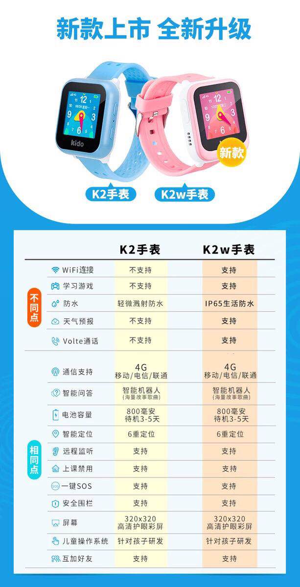 kido K2W | 30元/月 | 24个月 | 1、可设置5个本地亲情号码 2、本地网内拨打本地亲情号码免费 3、可设备黑白名单,非家长设置的号码,腕表无法呼入呼出 |