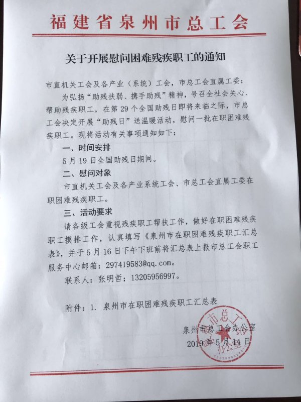 关于开展慰问困难残疾职工的通知