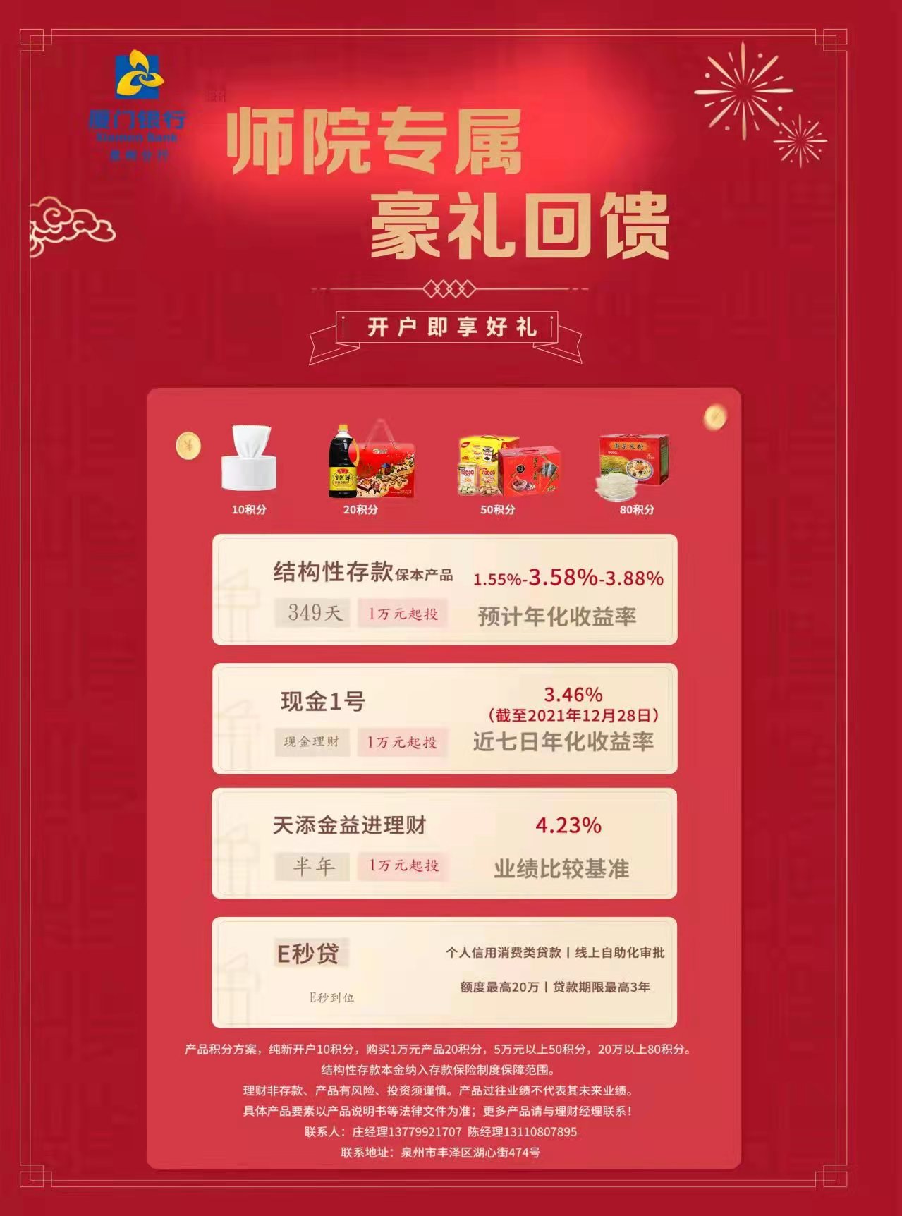 工会服务信息:厦门银行“泉州师院专属开户有礼活动”