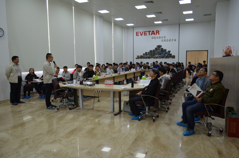 在公司会议室,公司副总经理王雄鹰代表公司欢迎光电专业师生一行的到来,简要介绍了公司近年来坚持以“品质、品牌、新品”为经营宗旨取得的发展成就。随后,我校光子技术研究中心廖廷俤教授上台发言,感谢公司提供大力支持与关怀,对公司近几年的发展成就表示祝贺,鼓励同学们珍惜参观学习的机会,认真交流了解光电技术的发展过程,把所学知识与参观体会高度融合起来。