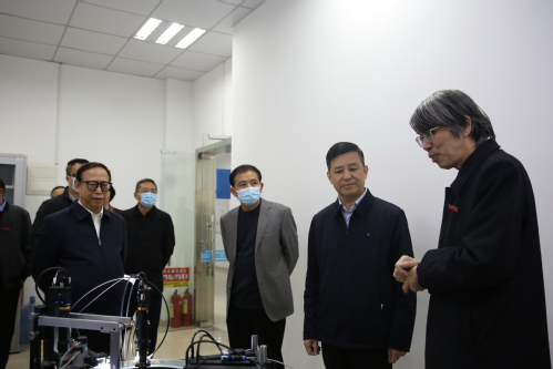 2022年2月18日下午,泉州市电子信息产业发展小组组长、泉州市人大常委会主任李建辉带领调研组一行莅临英国威廉希尔公司官网考察调研光子技术研究中心。英国威廉希尔公司官网校长屈广清、副校长夏侯建兵及相关职能部门、物信学院负责人陪同调研。