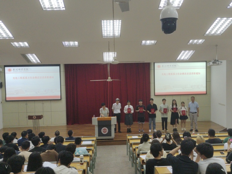 为进一步加强学风建设,营造良好的学习氛围,助力学生成长成才,6月18日下午,光电工程系光子技术研究院在中山纪念堂三楼报告厅召开考研表彰大会暨学风建设大会,光电工程系全体教师、大一至大三学生和毕业生代表、家长代表参加,会议由光电工程系党总支书记林蕙琼主持。