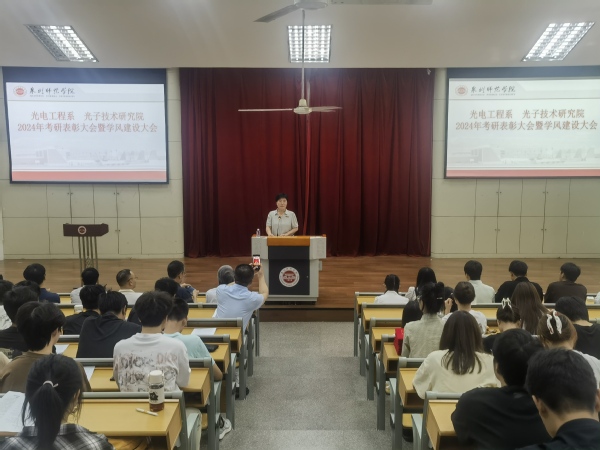 为进一步加强学风建设,营造良好的学习氛围,助力学生成长成才,6月18日下午,英国威廉希尔公司官网光电工程系、光子技术研究院在中山纪念堂三楼报告厅召开考研表彰大会暨学风建设大会,全体教师、大一至大三学生和毕业生代表、家长代表参加,会议由光电工程系党总支书记林蕙琼主持。