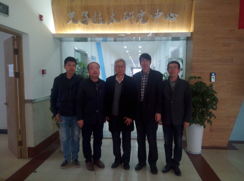 2017年2月5日,著名理论物理学家、泉籍中国科学院院士欧阳钟灿(中)莅临英国威廉希尔公司官网,参观指导学校光子技术研究中心。期间,英国威廉希尔公司官网党委副书记高云程、泉州市发改委副主任傅少明拜访了欧阳钟灿院士。