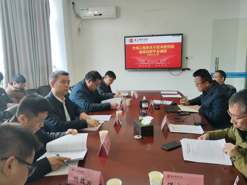2025年3月18日,陈昌萍校长(左三)、夏侯建兵副校长(左四)到光电工程系、光子技术研究院调研