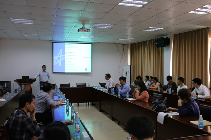 4月10日上午,我校邀请新加坡国家科技局叶恩毅研究员和李子彪研究员在化工449会议室举办了题为“Functional Noble Metal Nanostructures and Their Applications”和“Stereocomplex Induced High Performance PLA and Biomedical Applications”的学术讲座。讲座由化工与材料学院杨大鹏教授主持,化工与材料学院部分师生聆听了讲座。