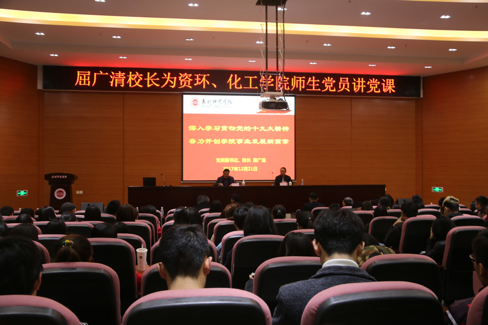 校党委副书记、校长屈广清为资环学院、化工学院师生党员讲党课