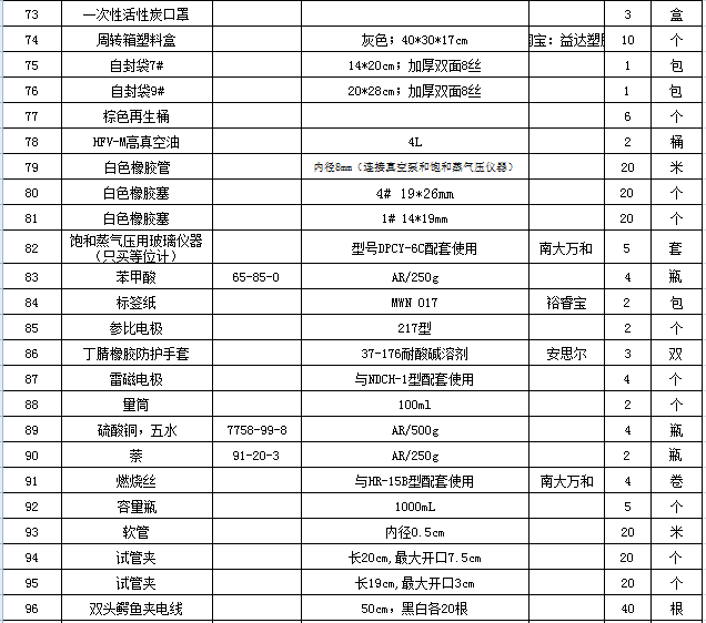 二、项目名称:化工与材料学院2018-2019第一学期实验教学低值易耗品等仪器设备
