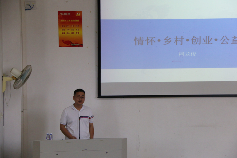 柯龙俊校友首先通过视频展示他的创业项目,包括乡村美食挖掘与推广、南洋楼的改造与维护,乡村旅游开发等,通过乡村文化产业包装,再形成一条龙的旅游产业,既服务于村民,又带动当地经济发展,同时又给年轻人回乡创业创造机会。柯龙俊说,年轻人创业关键在于:线上有平台,线下有阵地,平时有活动,三管齐下才能取得效果。他说创业是个艰辛的过程,需要有破釜沉舟的决心和坚韧不拔的毅力,他建议学弟学妹在学校期间多参与社会实践活动和志愿服务,开阔眼界积累经验,为走出社会做准备。